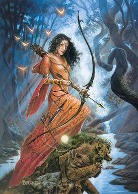 Diana is a greetings card featuring artwork by Briar from his mythology range. The card is blank to allow it to be used for any occasion.