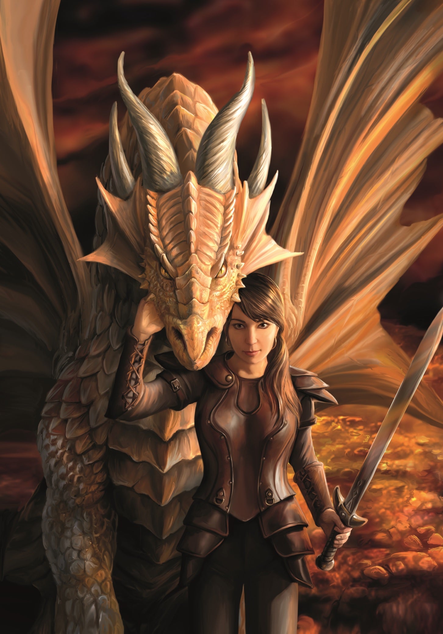 Inner Strength is a greetings card featuring artwork by Anne Stokes, featuring an image of a warrior girl holding a sword standing next to her golden dragon. The card is blank to allow it to be used for any occasion.