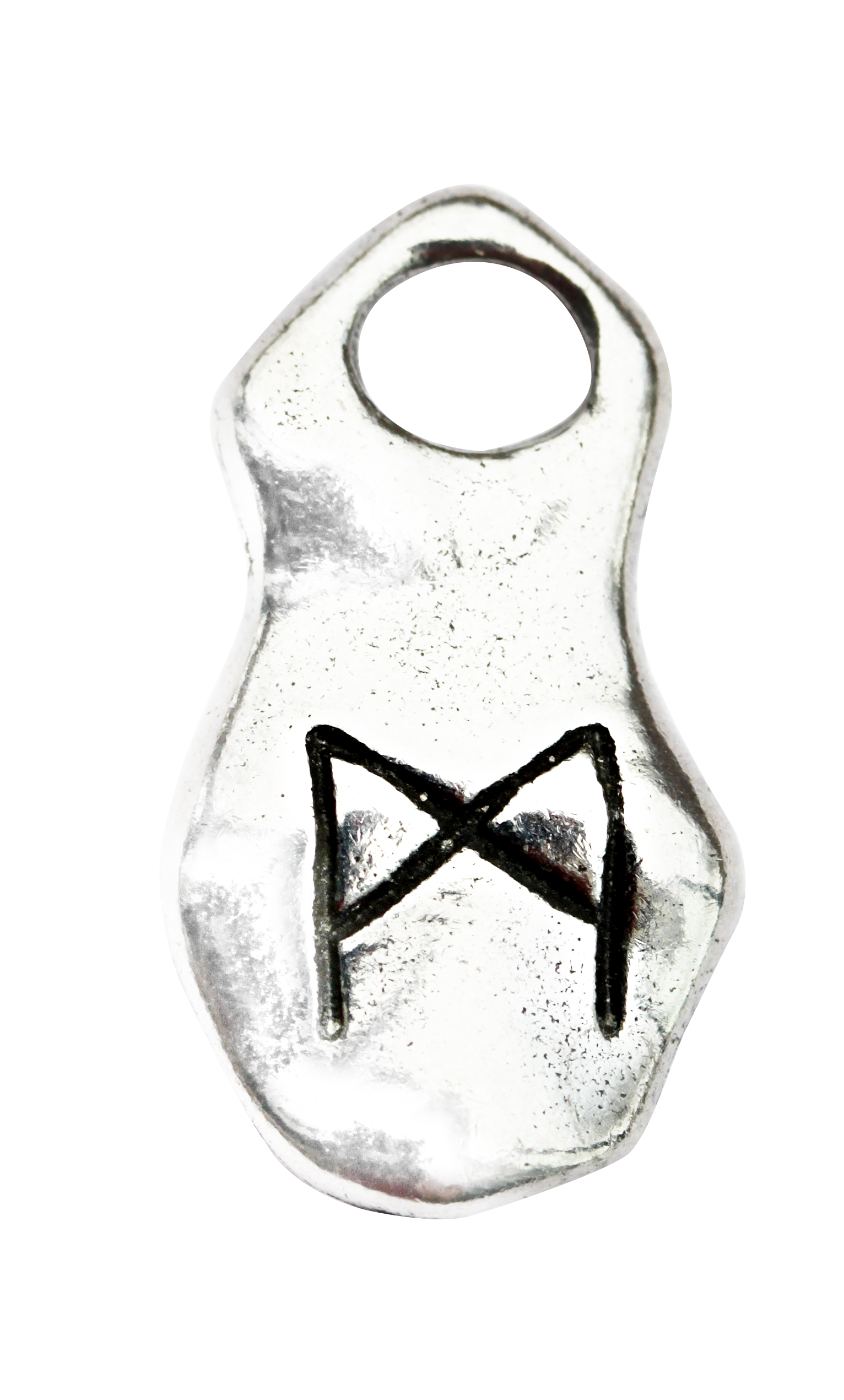Mannaz symbolises creativity, intelligence, planning, expression and cooperation between individuals for the greater good. It teaches the reconciliation of opposites. It can show how to live according to your own nature and how to take responsbility for your life. Wearing this rune can strengthen and improve the mind to spiritually grow.